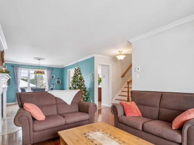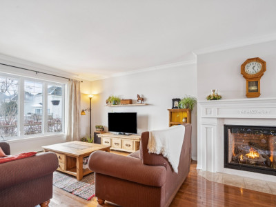 The main floor features a closed entrance hall leading to a comfortable living room with a gas fireplace. The dining room offers generous space, while the bright kitchen provides excellent natural light, a breakfast nook, and ample storage. A powder room completes this level.