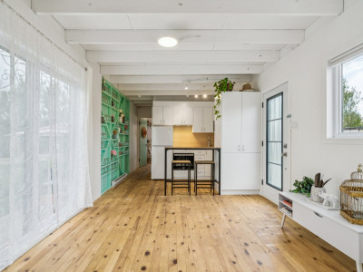+ Mini-maison très bien entretenue, conçue pour optimiser l'espace : salon, petite cuisine/cuisson, coin nuit, salle de bain compacte, rangements intégrés.